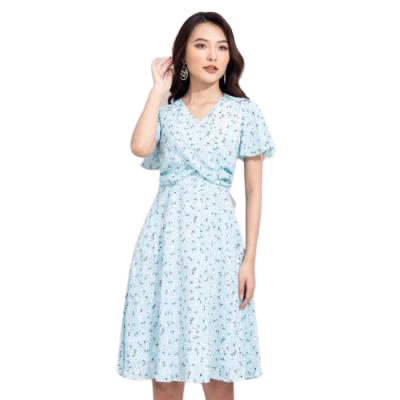 - Thiết kế cổ tim, tay dơi, tà xếp chéo 2 bên