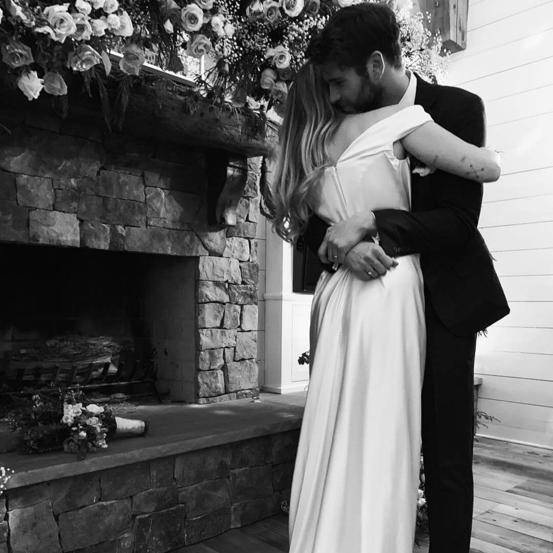 Ca sĩ Miley Cyrus và hôn phu Liam Hemsworth đã cử hành hôn lễ bí mật vào ngày 23/12 (theo giờ Mỹ). Vào ngày hôm qua (26/12), Miley đã chính thức thông báo tin vui này đến người hâm mộ cùng những bức ảnh kỷ niệm ngọt ngào trên Instagram cá nhân. Váy cưới của Miley Cyrus đến từ nhà mốt Vivienne Westwood với gam màu trắng ngà cùng điểm nhấn trễ vai quyến rũ.